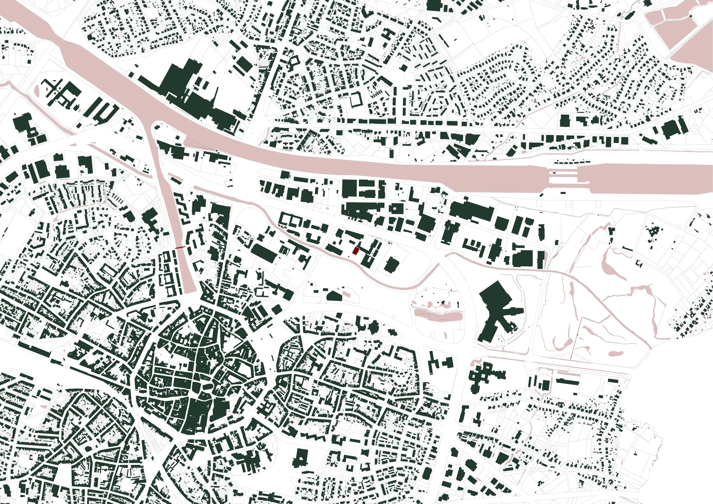 PIKOH, een secundaire school met een aanbod in beeldende, media- en podiumkunsten, groeit snel. Om deze groei te ondersteunen, heeft de Provincie Limburg beslist om een multifunctioneel gebouw voor de eerste graad op te trekken en het bestaande C-gebouw om te vormen tot de centrale administratieve hub van de school. Gelegen op de stadscampus “Elfde-Linie” maakt dit ontwerp deel uit van een groen-blauwe transformatie geïnspireerd op het Amerikaanse campus-model, met de Demer en het Kapermolenpark als natuurlijke pijlers. Ons ontwerp voorziet een helder en compact gebouw met vijf bouwlagen. Strategisch geplaatst, op 40m van de Demer en aan de rand van het perceel, laat het ontwerp ruimte voor een grote vergroende speelplaats. Het aanwezige hoogteverschil wordt benut door binnen- en buitentrappen die de verschillende ge- bouwen van de school verbinden en dienstdoen als tribunes en ontmoetingsplekken.